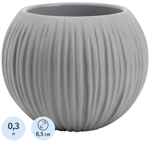 Кашпо с поддоном La decoro Сфера Мини 0.3 л серый жемчуг (9.7×8.5 см)<br><br>Кашпо с оригинальным дизайном. В тренде современной интерьерной моды. Идеально подходит для суккулентов и других растений.<br>Представлено линейкой разных литражей. Нижняя часть кашпо отделена от основного корпуса дренажным донышком.<br><br>После высадки растения в кашпо, его не нужно разбирать, чтобы сливать воду. Лишняя влага стекает в специальный резервуар и предотвращает загнивание корней.<br><br>Цветовая палитра включает элегантный серый, что идеально подходящий под любой интерьер и стиль.<br><br>Диаметр основания кашпо составляет 5 см.<br><br>Кашпо оформлено в стильную упаковку с амбассадором бренда La Decoro Юлией Высоцкой.