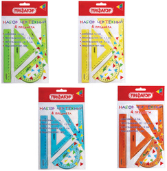 | 892-754 | линейка 16 см, 2 треугольника, транспортир, неоновый, прозрачный, ассорти | набор |