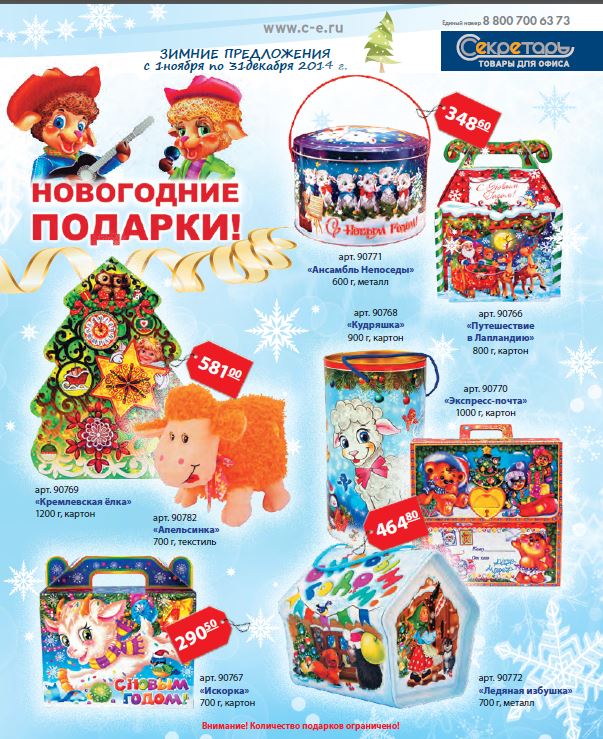 Подготовлены буклеты "Зимние предложения" с новыми рекламно-информационными материалами. Акции действуют с 1 ноября по 31 декабря 2014 года. Оформляйте заказы и получайте ваши подарки! Внимание: количество подарков по некоторым акциям ограничено! Полные условия, а также перечень артикулов, участвующих в акциях, здесь